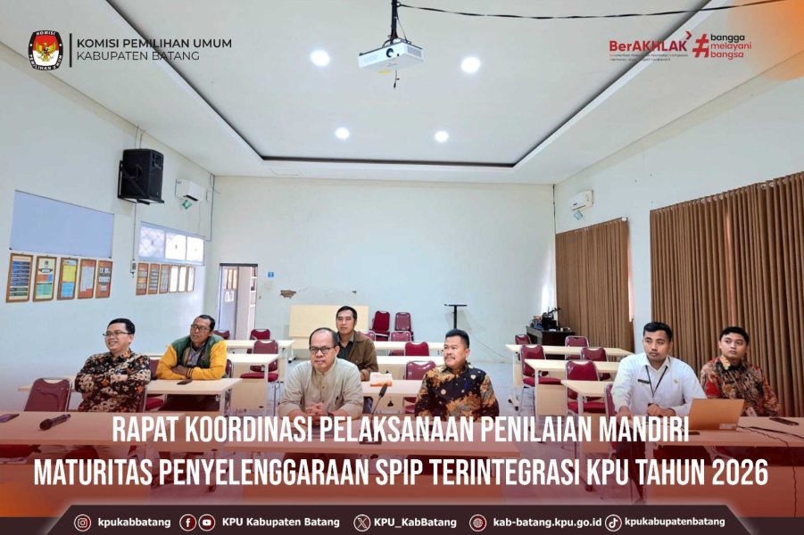 #TemanPemilih, Jumat (30 Januari 2026) KPU Kabupaten Batang mengikuti kegiatan Rapat Koordinasi Pelaksanaan Penilaian Mandiri Maturitas Penyelenggaraan SPIP Terintegrasi KPU Tahun 2026, diadakan Oleh KPU RI secara daring melalui zoom. ....