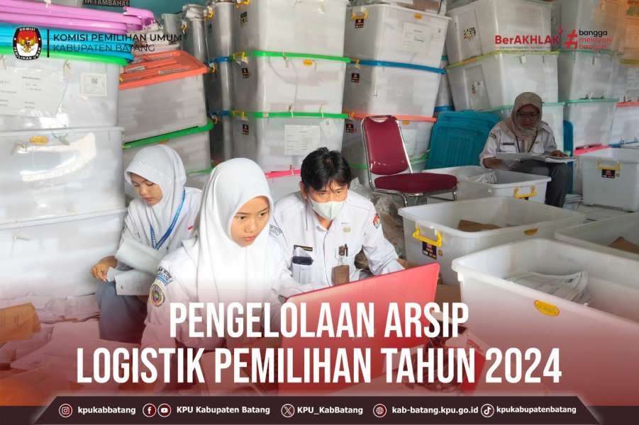 #TemanPemilih, Senin (2 Februari 2026) KPU Kabupaten Batang melaksanakan Pengelolaan Arsip Pemilihan Serentak Tahun 2024 di Gudang KPU Kabupaten Batang. Kegiatan tersebut di laksanakan oleh bagian Keuangan Umum dan Logistik. ....