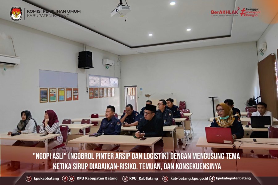 #TemanPemilih, Selasa (3 Februari 2026) KPU Kabupaten Batang mengikuti kegiatan "NGOPI ASLI" (Ngobrol Pinter Arsip dan Logistik) dengan mengusung tema Ketika Sirup diabaikan-risiko, temuan, dan konsekuensinya Kegiatan diikuti oleh Kasubbag Kul dan Staf KPU Kabupaten Batang. ....