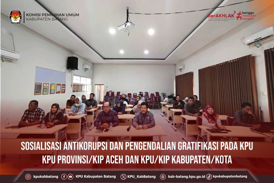 #TemanPemilih, Senin (6 September 2025) KPU Kabupaten Batang mengikuti Kegiatan Sosialisasi Antikorupsi dan Pengendalian Gratifikasi pada KPU, KPU Provinsi/KIP Aceh, dan KPU/KIP Kabupaten/Kota, yang diadakan oleh KPU RI secara daring melalui zoom.