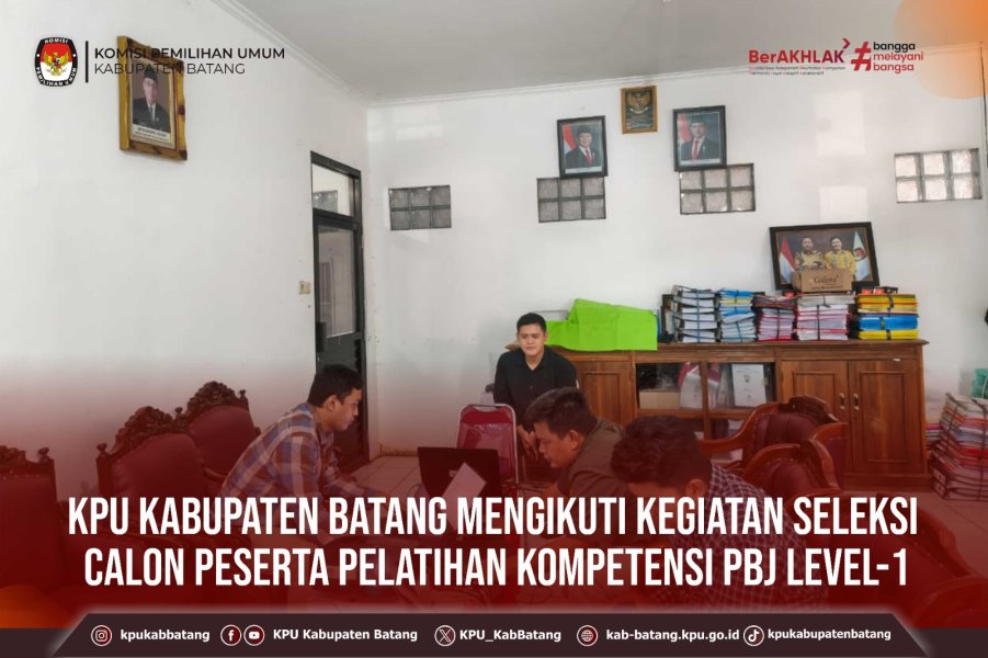 #TemanPemilih, Selasa (16 September 2025) KPU Kabupaten Batang Mengikuti Seleksi Calon Peserta Pelatihan Kompetensi PBJ Level-1. yang diadakan oleh KPU RI secara daring melalui zoom. Peserta dari KPU Kabupaten Batang Ismu Wijayanto, Nanda Rofiq Kurniawan dan Wachid Nur Zidiq.