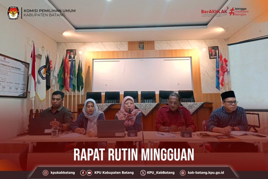 #TemanPemilih, Selasa (30 Desember 2025) KPU Kabupaten Batang melaksanakan Rapat Rutin mingguan. Rapat diikuti oleh Komisioner, Pejabat Struktural dan staf Sekretariat KPU Kabupaten Batang.