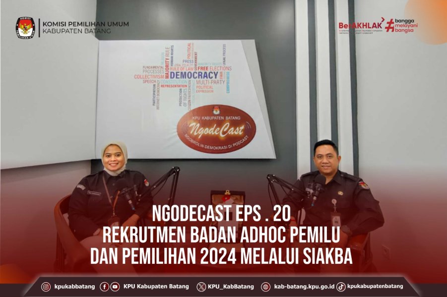 #TemanPemilih, Rabu ( 31 Desember 2025) KPU Kabupaten Batang melaksanakan NGODECAST (Ngobrolin Demokrasi di Podcast) Eps. 20 Rekrutmen Badan Adhoc Pemilu dan Pemilihan 2024 melalui SIAKBA