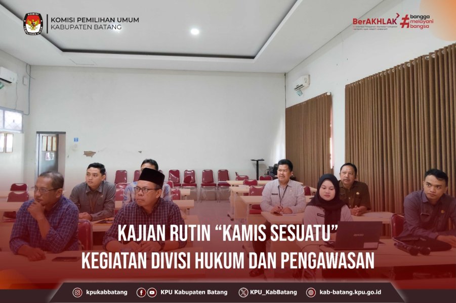 #TemanPemilih, Kamis (8 Januari 2026) KPU Kabupaten Batang mengikuti kegiatan Kajian Rutin Kamis Sesuatu seri ke XXXIV Putusan Perkara Nomor 272/PHPU BUP-BUP-XXIII/2025 Bupati dan Wakil Bupati Mimika Tahun 2024. Kegiatan diikuti oleh Ketua Divisi Hukum dan Pengawasan Tarwandi KPU Kabupaten Batang, Kasubbag TPPH beserta Staf TPP KPU Kabupaten Batang.