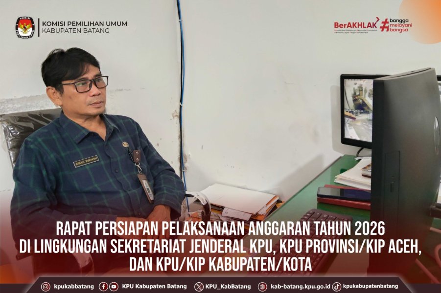 #TemanPemilih, Kamis (5 Februari 2026) KPU Kabupaten Batang mengikuti kegiatan Rapat Persiapan Pelaksanaan Anggaran Tahun 2026 Di Lingkungan Sekretariat Jenderal KPU, KPU Provinsi/KIP Aceh, dan KPU/KIP Kabupaten/Kota, diadakan Oleh KPU RI secara daring melalui zoom.