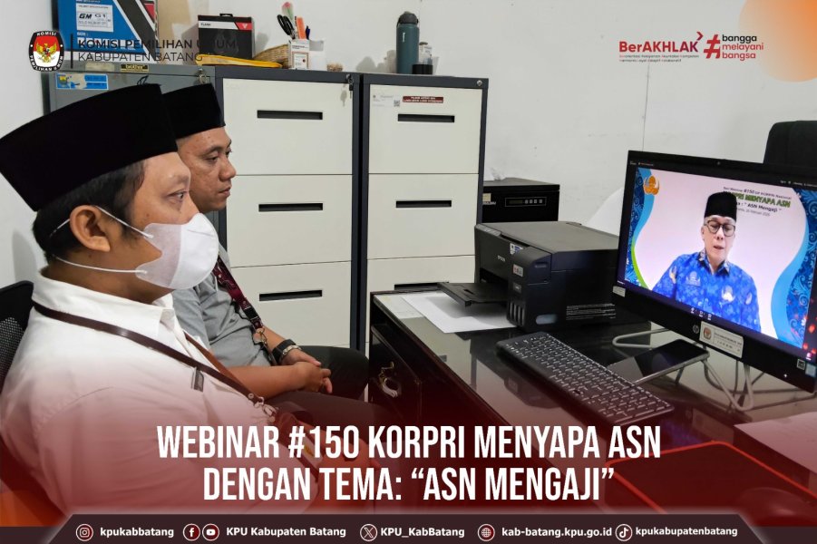 #TemanPemilih, Kamis (26 Februari 2026) KPU Kabupaten Batang mengikuti kegiatan Seri Webinar #150 KORPRI Menyapa ASN dengan tema: “ASN Mengaji” secara daring melalui zoom.