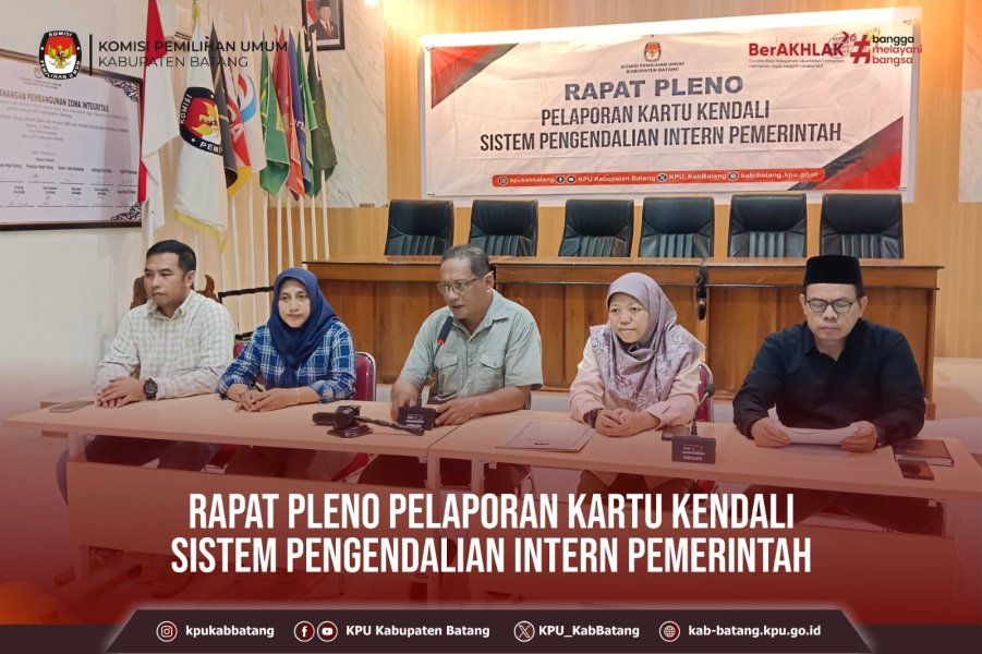 Rabu, 3 Juli 2025 KPU Kabupaten Batang melaksanakan Rapat Pleno Pelaporan Kartu Kendali Sistem Pengendalian Intern Pemerintah (SPIP) bulan Juni 2025.