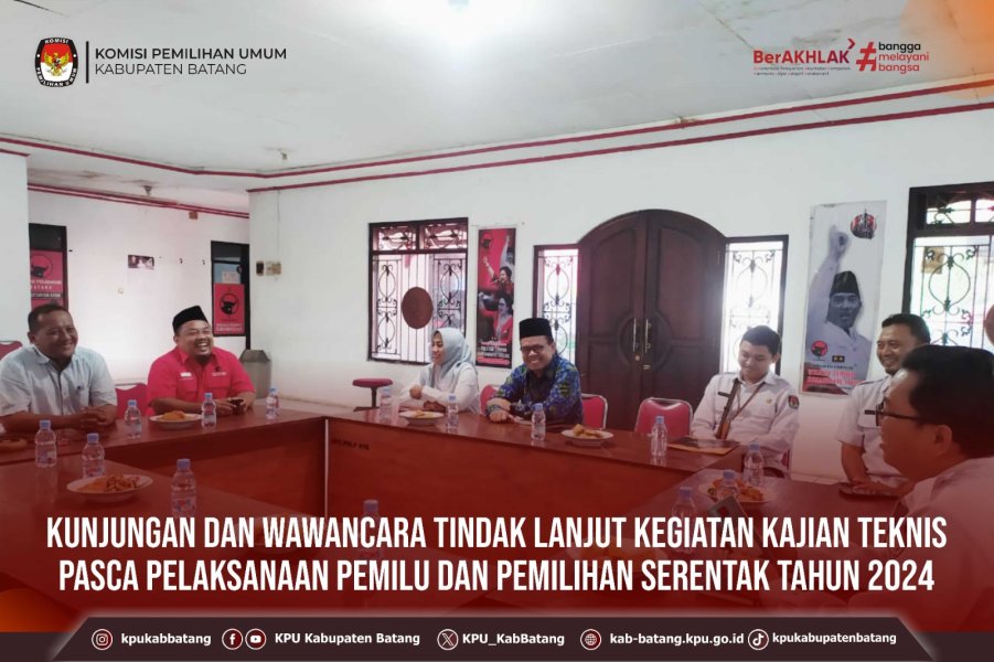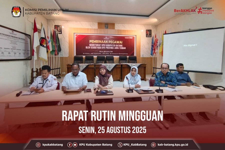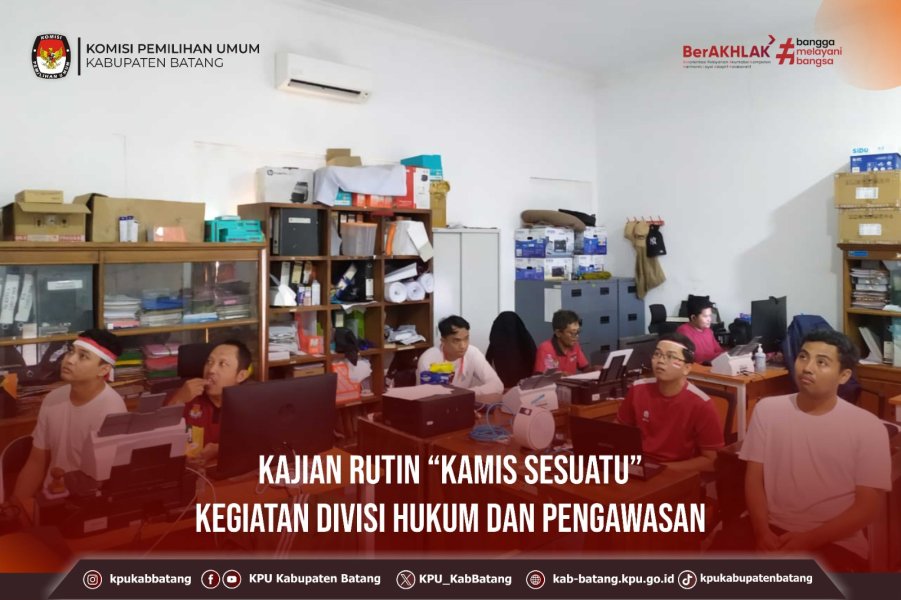 #TemanPemilih, Jumat (22 Agustus 2025) KPU Kabupaten Batang mengikuti kegiatan Kajian Rutin Kamis Sesuatu Seri ke XV Divisi Hukum dan Pengawasan Tahun 2025 dengan Putusan Perkara Nomor 274/PHPU.BUP-XXIII/2025 PHPU Bupati dan Wakil Bupati Jayapura Tahun 2024, yang diselenggarakan oleh KPU Provinsi Jawa Tengah.