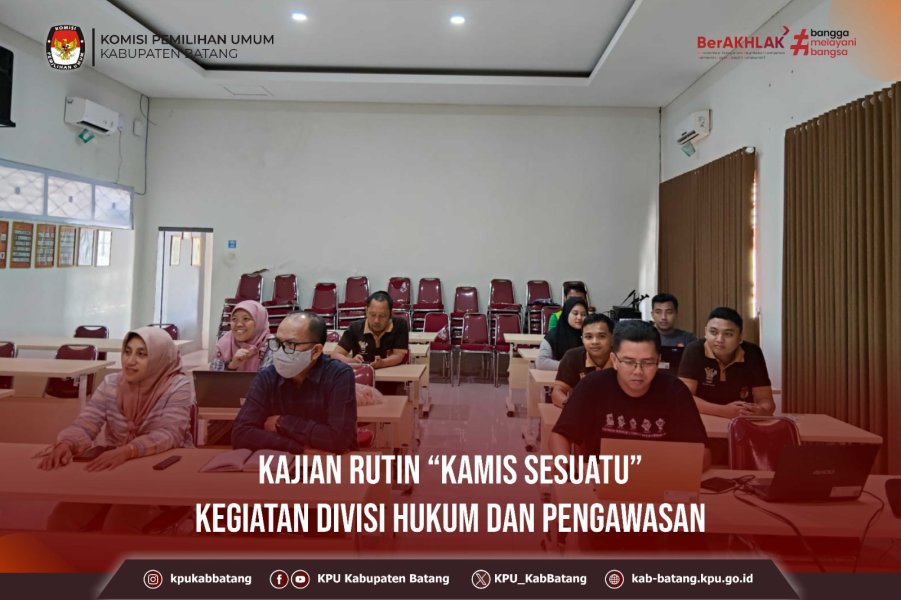 KPU Kabupaten Batang mengikuti kegiatan Kajian Rutin Kamis Sesuatu Seri ke XI Divisi Hukum dan Pengawasan Tahun 2025 dengan Putusan Perkara Nomor 132/PHPU.BUP-XXIII/2025 PHPU Bupati dan Wakil Bupati Tasikmalaya Tahun 2024, yang diselenggarakan oleh KPU Provinsi Jawa Tengah.