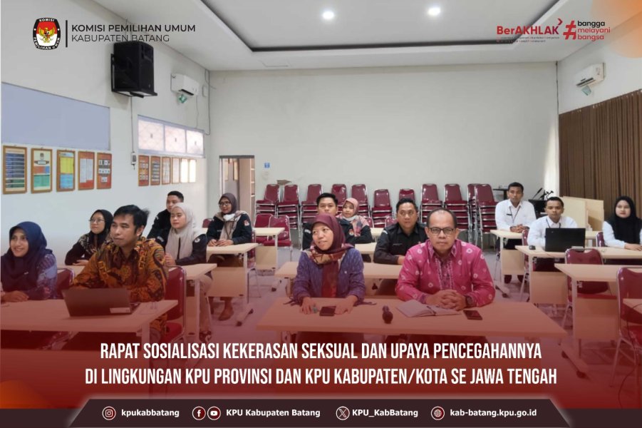 Kegiatan diikuti oleh Ketua Divisi Hukum dan Pengawasan Tarwandi KPU Kabupaten Batang, Sekretaris, Kasubbag TPP beserta Staf TPP KPU Kabupaten Batang.