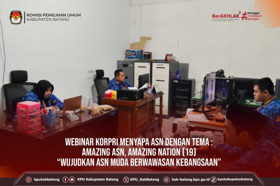 #TemanPemilih, Kamis (30 Oktober 2025) KPU Kabupaten Batang Mengikuti Uji Kompetensi Jabatan Fungsional Penata Kelola Pemilihan Umum Ahli Pertama Tahun 2025. yang diadakan oleh KPU RI secara daring melalui zoom. Peserta dari KPU Kabupaten Batang Ismu Wijayanto, Nanda Rofiq Kurniawan, Wachid Nur Zidiq, Siswanto, Titis Puji Mulyani, Abdul Latif, Muhamad Misuari Somayaji.