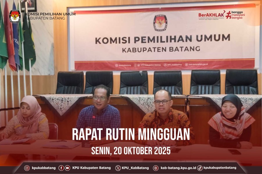 #TemanPemilih, Selasa (21 Oktober 2025) KPU Kabupaten Batang mengikuti Rapat Koordinasi Pengawasan dalam Rangka Peningkatan dan Penguatan Kinerja Pengawasan di Lingkungan KPU, KPU Provinsi dan KPU Kabupaten/ Kota, kegiatan ini diadakan oleh KPU RI secara daring melalui zoom.