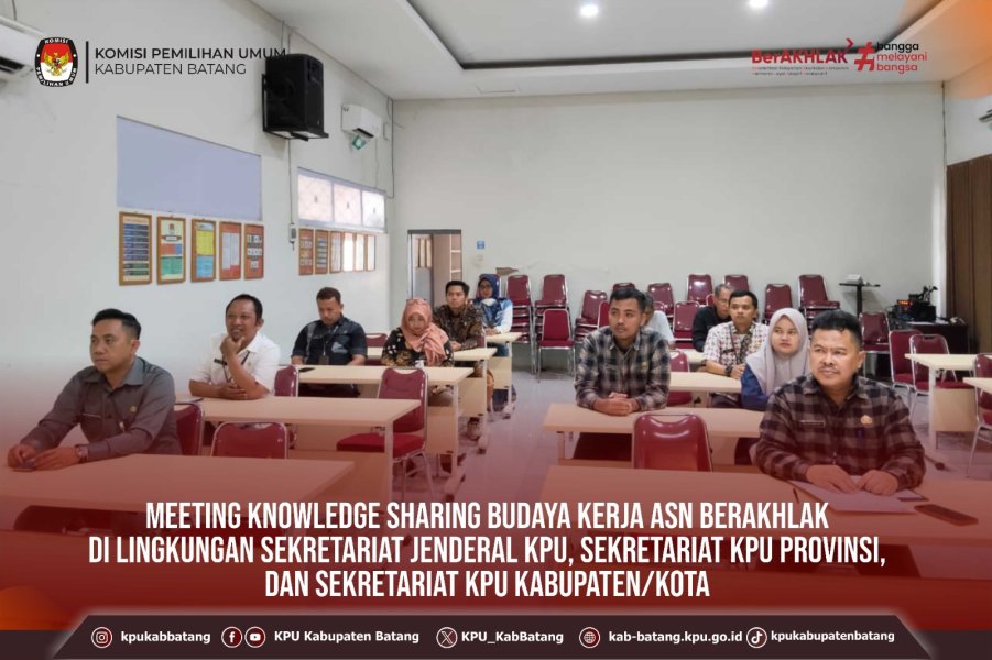 #TemanPemilih, Kamis (25 September 2025) KPU Kabupaten Batang Meeting Knowledge Sharing Budaya Kerja ASN BerAKHLAK di Lingkungan Sekretariat Jenderal KPU, Sekretariat KPU Provinsi, dan Sekretariat KPU Kabupaten/Kota, yang diadakan oleh KPU RI secara daring melalui zoom.