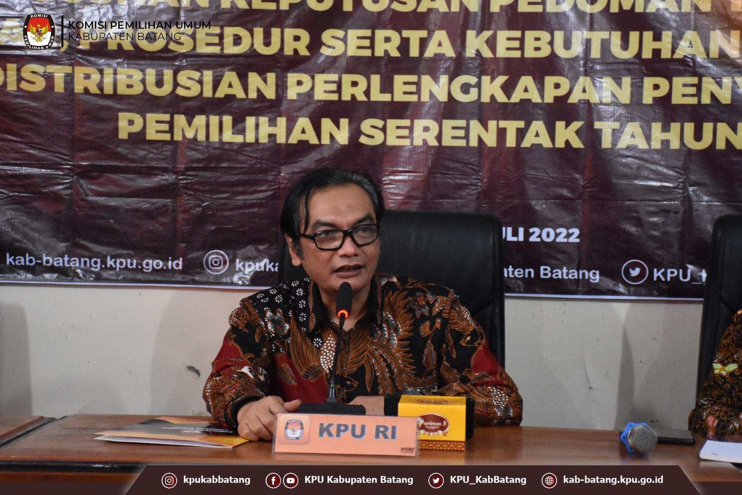 KPU Kapaten Batang melaksanakan kegiatan menyaksikan bersama Peluncuran Tahapan Pemilu 2024 di Aula KPU. Kegiatan tersebut diihadiri oleh Jajaran Forkompimda (PJ Bupati, Polres, Kodim, Kejari, DPRD dan PN) Hadir langsung Dra. Lani Dwi Rejeki, M.M. PJ Bupati Batang, Ali Nurudin, S.H., M.H. Kajari Batang. Hadir juga Mahbrur Ketua Bawaslu Batang, Para Kepala/Perwakilan Dinas Instansi Terkait (Bakesbangpol, Satpol PP, Disdukcapil, Dinkes, Dinsos, Disdikbud, Diskominfo, Bagian Hukum, Kemenag, Lapas), Asisten 1 Setda Batang, Pimpinan Partai Politik Tingak Kabupaten Barang, Ketua PWI dan Media masa. Nur Tofan Ketua KPU Batang menyampaikan bahwa kehadiran forkompimda, dinas instansi terkait, Bawaslu, Partai Politik dan Media menjadi do'a dan support bagi KPU Batang untuk nelaksanakan tahapan secara profesional, netral dan berintegtitas untuk mencapai Penilu yang berkualitas dan bermartabat. Dra. Lani Dwi Rejeki, M.M. PJ Bupati Batang dalam sambutannya menyampaikan bahwa Pemilu merupakan tanggungjawab bersama berbagai pihak Pemerintah, Penyelenggara, Peserta, Pemilih dan lain sebagainya. Koordinasi dan komunikasi berbagai pihak diperlukan untuk kelancaran penyelenggaran Pemilu 2024. #TahapanPemilu2024Mulai