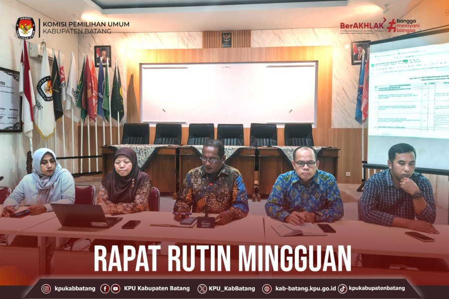 #TemanPemilih, Senin (19 Januari 2026) KPU Kabupaten Batang melaksanakan rapat rutin mingguan. Rapat diikuti oleh Komisioner, Pejabat Struktural dan staf Sekretariat KPU Kabupaten Batang.