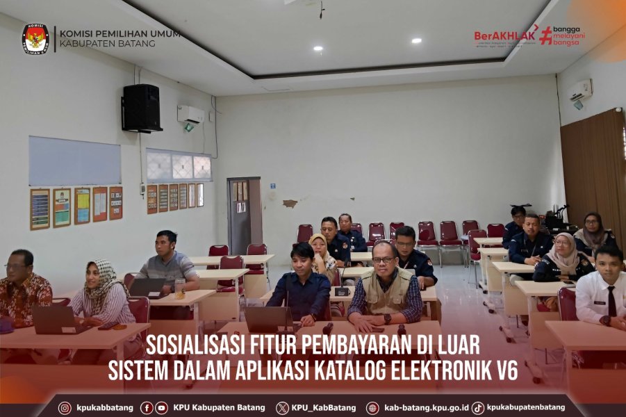#TemanPemilih, Selasa (20 Januari 2026) KPU Kabupaten Batang mengikuti kegiatan Sosialisasi Fitur Pembayaran di Luar Sistem dalam Aplikasi Katalog Elektronik V6. diadakan Oleh LKPP secara daring melalui zoom.