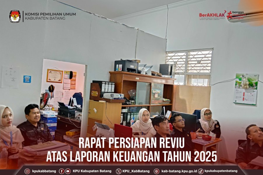#TemanPemilih, Rabu (21 Januari 2026) KPU Kabupaten Batang mengikuti kegiatan Rapat Persiapan Reviu atas Laporan Keuangan Tahun 2025 (Unaudited), diadakan Oleh KPU RI secara daring melalui zoom.