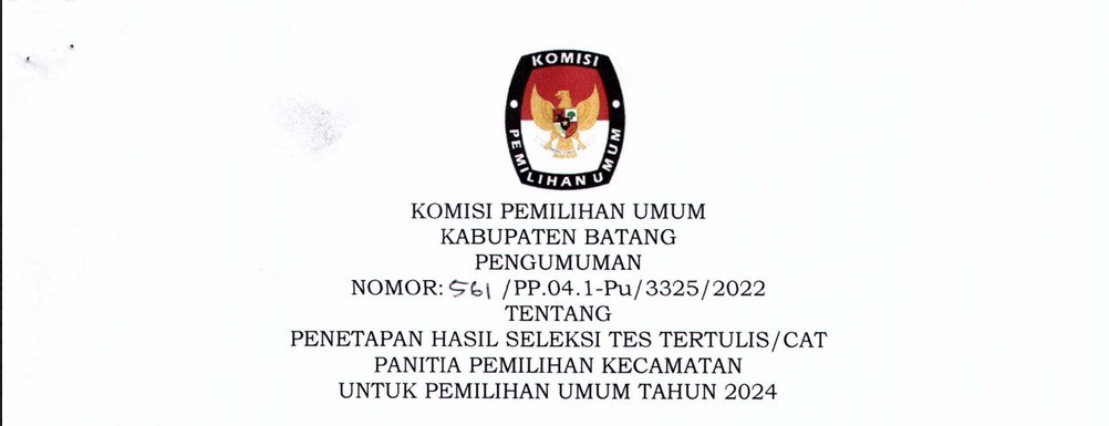 Unduh Pengumuman Hasil Seleksi Administrasi Panitia Pemilihan Kecamatan Untuk Pemilihan Umum Tahun 2024, Klik Disini