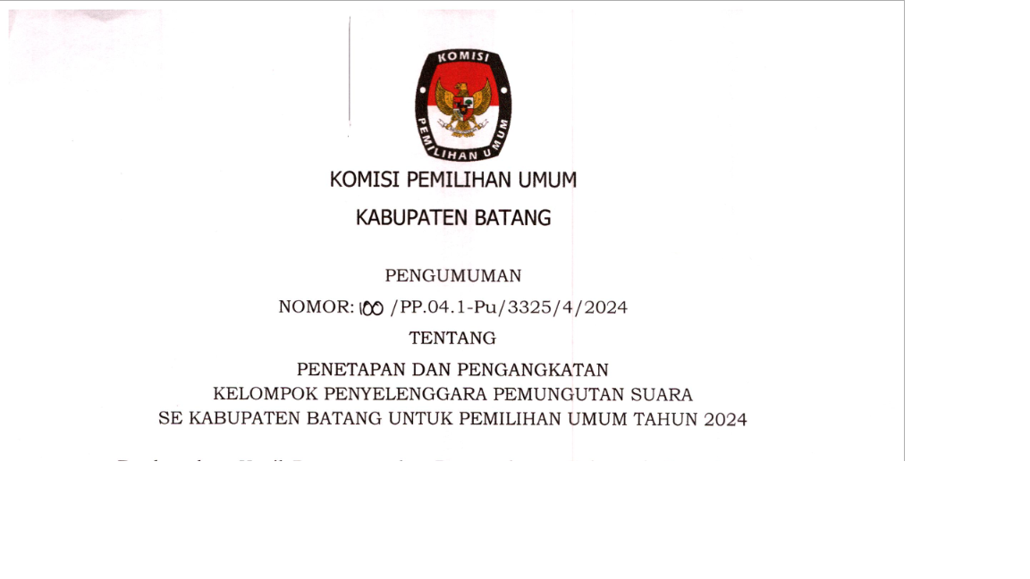 Informasi lebih lanjut disampaikan melalui Sekretariat KPU Kabupaten Batang
