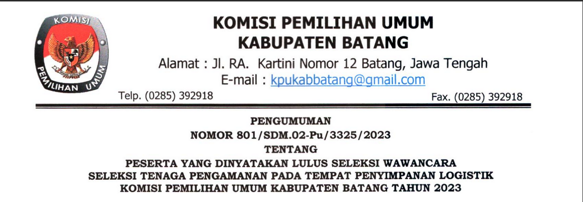 SK Pemberhentian dan Pengangkatan Anggota Komisi Pemilihan Umum Kabupaten Batang, Klik Disini
