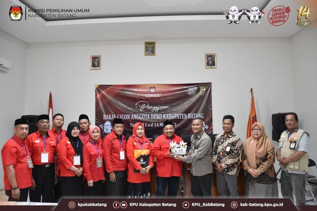 Kamis (11/5) DPC Partai Demokrasi Indonesia Perjuangan mengajukan 45 orang Bakal Calon Anggota DPRD Kabupaten Batang Pemilu Tahun 2024, di Kantor KPU Kabupaten Batang pada jam 15.30 WIB. Pengajuan dilakukan oleh ketua Ahmad Ridwan didampingi Sekretaris Junaenah serta beberapa pengurus dan Bakal Calon Anggota DPRD Kabupaten Batang dari Partai Demokrasi Indonesia Perjuangan.