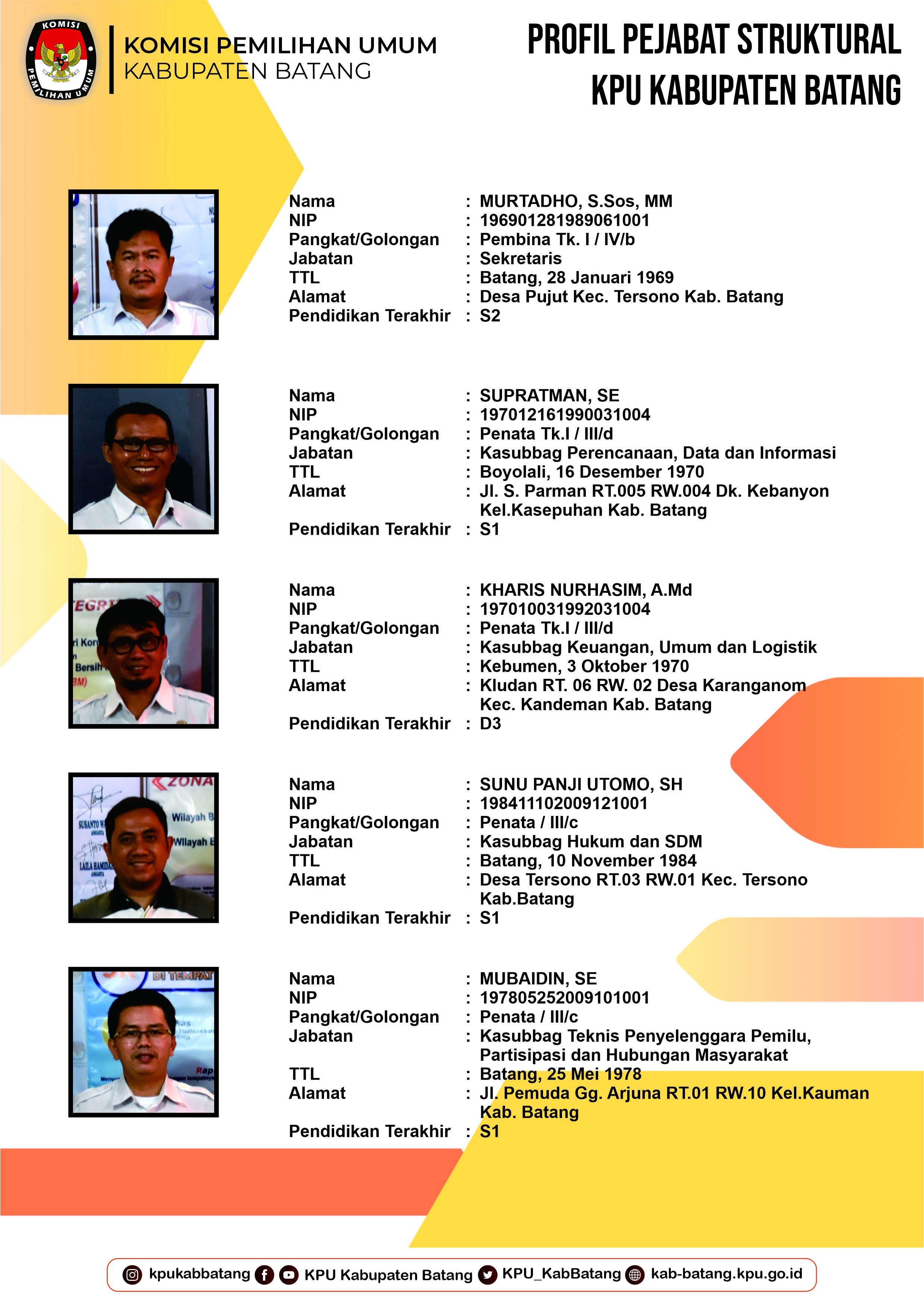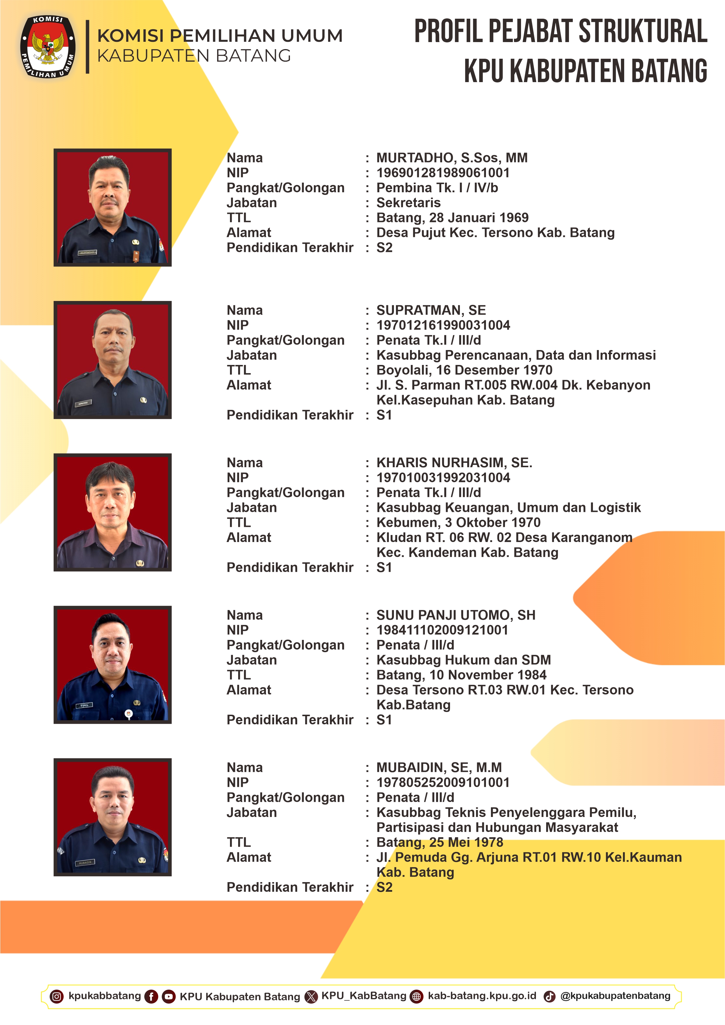Profil Singkat Pejabat Struktural KPU Kabupaten Batang